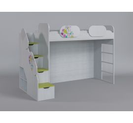 В таких кроватях спальное место располагается на втором ярусе. А вот снизу может располагаться место для творчества, рабочее место, игровая зона, шкаф, комод или полки. Для того, чтобы залезть на кровать, ребенку необходимо будет взобраться по специальной лестнице. Детская кровать-чердак полностью безопасна для малыша. Это объясняется ее устойчивостью, наличием бортика безопасности и его высотой, надежностью крепежа, удобной лестницей и высотой пространства между двумя ярусами.