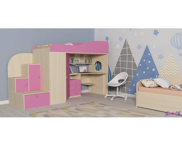 Кровать-чердак Кадет-1 Дуб молочный/Розовый