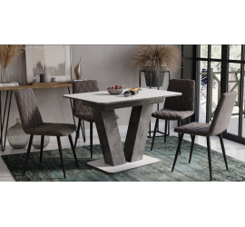 Стол обеденный раздвижной «Манхеттен» Т1 (Белый муар, Стекло матовое белый мрамор)