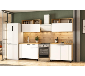 Кухня Мэйбл 2.0м (корпус белый/мрамор лайт, мрамор дарк) 26мм дуб вотан
